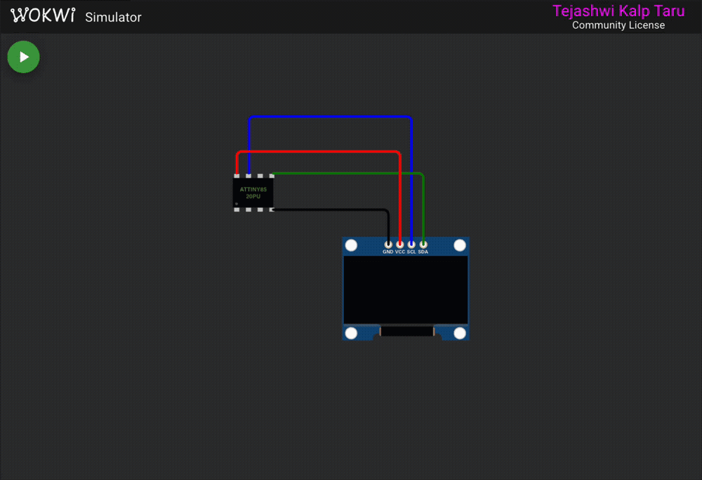 Three ATtiny85 games by Daniel Champagne ship as examples. They were originally written for ssd1306xled v0.0.1 and use only the low-level byte transmission functions (ssd1306_send_command, ssd1306_send_byte, ssd1306_send_data_start/stop), so they work on v1.0.0 without changes.