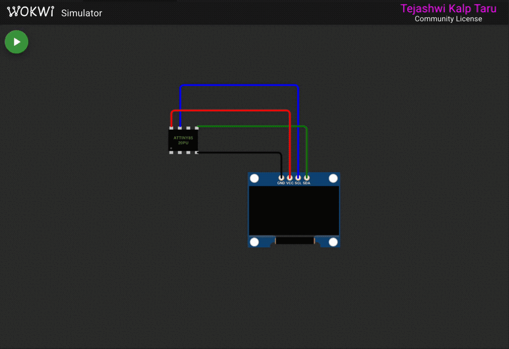 Sound is generated by toggling PB4 at the target frequency, the same approach the game examples use. The buzzer in the Wokwi diagram picks it up directly.